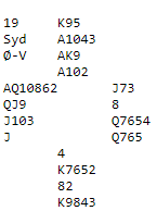 Det viser at syds kortvurdering var bra. Men 3 grand ble altså kontrakten, og svært få var i slem uansett da de fleste åpnet med 1 ruter.