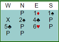 Som du ser ar det to spartapere og en bet i 6 spar, Sverige +100.