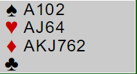 Med dette åpnet de aller fleste på vests pass med 11 poang. Nicolai sa 1 kløver og hørte 1 ruter som viste 4+ hjerter fra Stian. Hva ville du meldt nå?