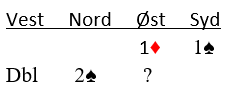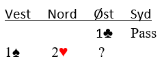 Det er en ekkel hånd å melde for nord over vests 2 ruter. Hun er alt for sterk for en enkel innmelding. Dobler er et alternativ, men det fører ofte til vanskelige situasjoner senere fordi du har to farger som bør vises, spesielt hvis Ø/V melder aktivt.
