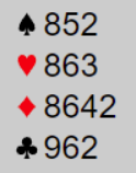 Jeg plukket opp denne hånda i 1.hånd, gunstig sone. Dette er en vassekte Yarborough om jeg ikke tar feil. Selv med en aktiv stil er dette selvsagt en hånd man ikke melder noe uansett stil. Fristelsen ble imidlertid for stor, og uten å tenke meg for mye om åpnet jeg.