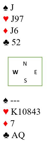 Vest skal spille 4 hjerter. Fra nord kommer spar knekt i utspill.