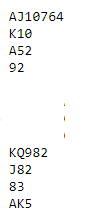 I dette spillet fra første sesjon hadde N/S morsomme kort.