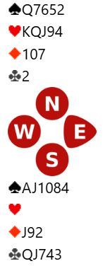 Hvis kløveren sitter 3-2 er det svært gode sjanser i denne storeslemmen. En spar kan trumfes hos syd etter uttrumfing. Da kan spar dame komme på og tieren gi stikk. Sparstjelingen gir ett ekstra trumfstikk og 2+2+3+5=12 sikre selv om spar 10 ikke blir stikk. Så det trettende stikket kan som nevnt skje pga. at spar dame sitter dobbel eller tredje, at ruteren ordner seg, eller muligens en spar-ruter skvis.
