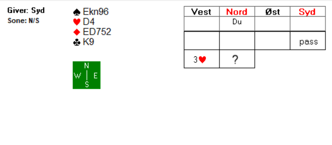 Uansett er det verd å avtale med sin makker hva 3 hjerter skal vise i en posisjon som dette.