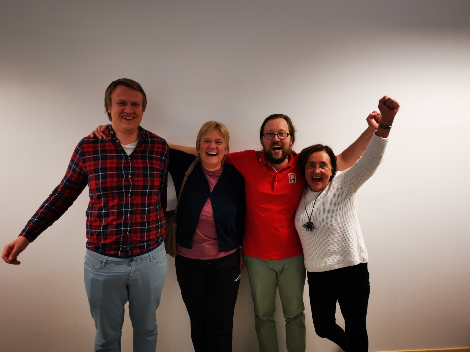 Sømnakameratene kunne slippe jubelen løs etter å ha vunnet siste sett klart. Fra venstre Tor E. Grude, Marian Grude, Kristian B. Ellingsen og Astrid Steen Lybæk.