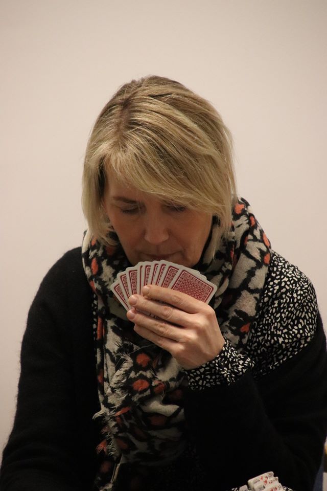 Ranja Sivertsvik holder kortene tett til brystet, og leder så langt kvaliken sammen med Tom Høiland og Marianne og Egil Homme.