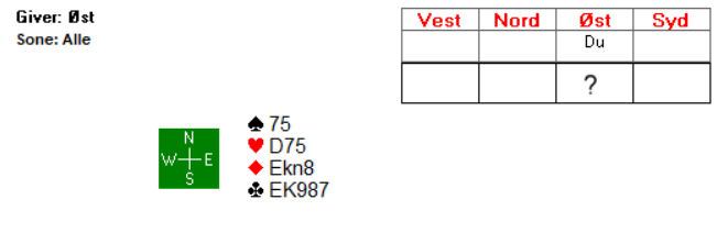 Kanskje bør det faktum at det ikke ble lettere å komme med senere i meldingsforløpet gjøre at man bør spørre seg to ganger før man passer over 1 kløver. Man ville selvsagt gjerne hatt en topphonnør i farga slik at man tåler at makker spiller ut fra for eksempel kongen dobbel, men her blir det til syvende og sist ulike hensyn som må veies opp mot hverandre.