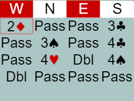 Noe av det som gjør posisjonen intrikat er at det er veldig uvisst hvilke kort øst kan ha. Men det at øst passer 2 ruter tyder i alle fall på at han/hun har veldig dårlig tilpasning i (minst) en av majorfargene. Det kan videre innebære at øst og vest har hver sin majorfarge, og dermed kan det være at sitsen er svært sur med tanke på å spille majorkontrakt nord-syd. Med andre ord kan vi si at det ligger en advarsel i meldingsforløpet om at sitsen ikke er spesielt hyggelig for nord-syd.