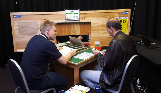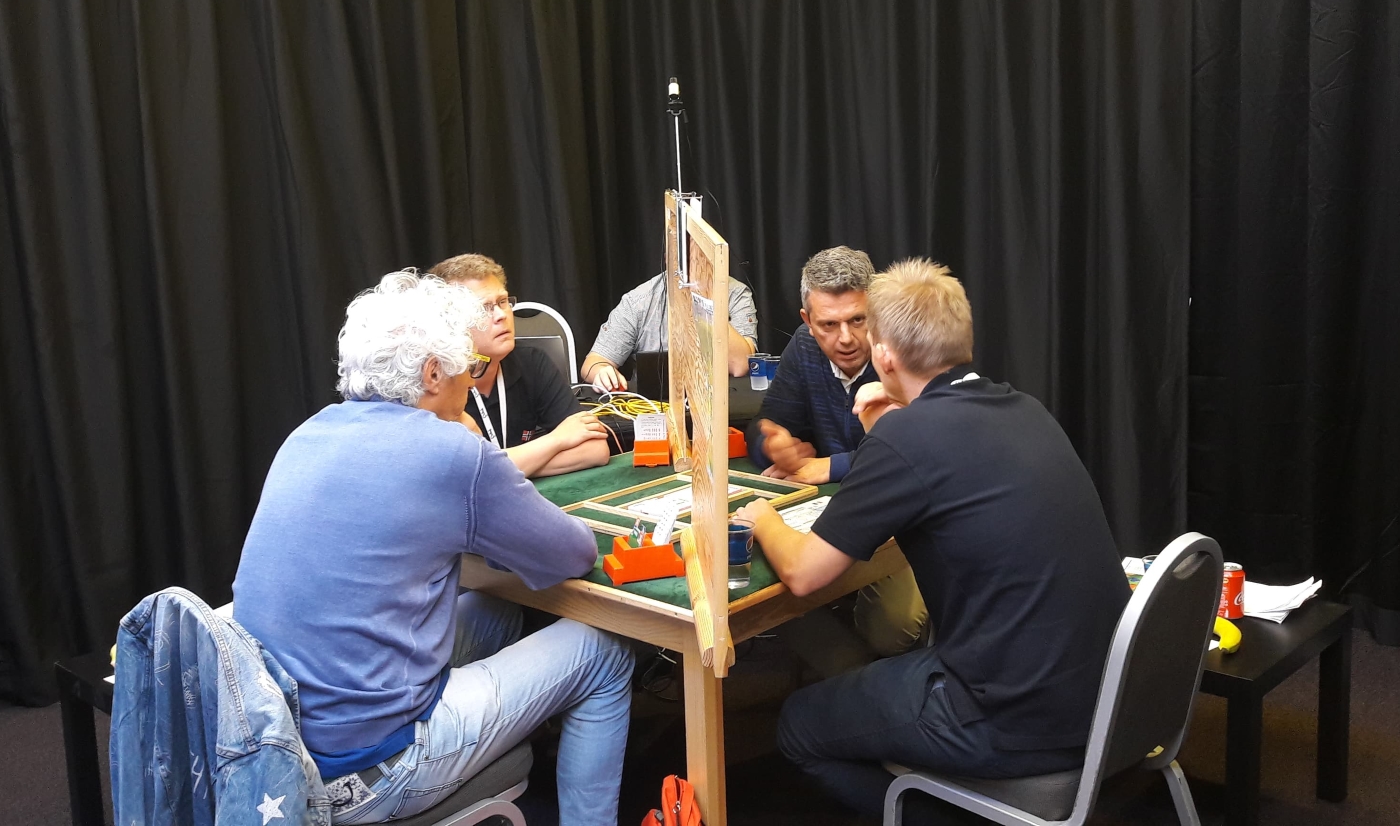 Ved det andre bordet var Nils og Ulf i 6 kløver, som er en beit, men motparten meldte over i 6 ruter som kostet 500. Norge vinner 3 IMP, men turneringsleder ble tilkalt, slik at det kan bli en korreksjon på spillet.