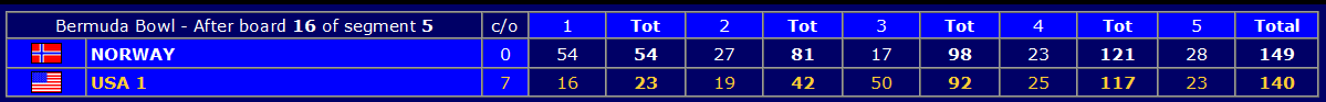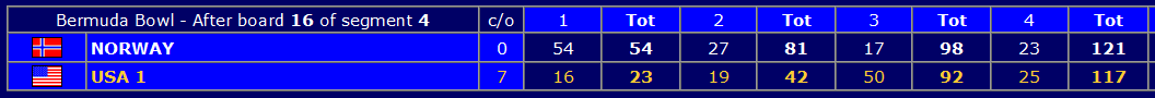 04:00: Norge - USA 1, sett 4 av 5 BBO Scorecard