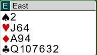 Mens Rodwell gikk inn med 2 hjerter ved det andre bordet, valgte Nils å passe. Det kommer kanskje ikke som noen overraskelse at jeg har sansen for Nils valg om å melde pass. Det er riktig å være med om det finnes hjertertilpasning, men om så ikke er tilfelle kan det fort være tungt å spille kontrakt øst-vest. Det verste er at vest kan ha en del kort, og dermed nok til å melde over 2 hjerter, uten at noen av honnørene er virksomme for øst. Da risikerer man å komme enda høyere enn 2-trinnet.