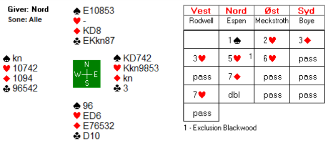 Meckstroth tok imidlertid sjansen på 4 hjerter, og da hadde ingen noe å tilføye: