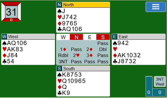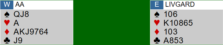 Ved det andre bordet gjenmeldte Rodwell 3 ruter i stedet for 3 hjerter:
