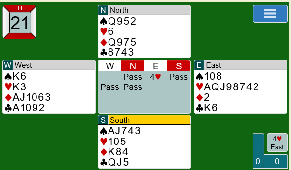 Ingen av vestspillerne klarte denne prøven, og dermed gikk kontrakten hjem ved begge bord.