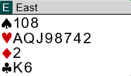 I spill 21 var det øst sin tur til å plukke opp ei lignende hjerterfarge. Hva ville du åpnet med her (andre hånd, gunstig sone)?
