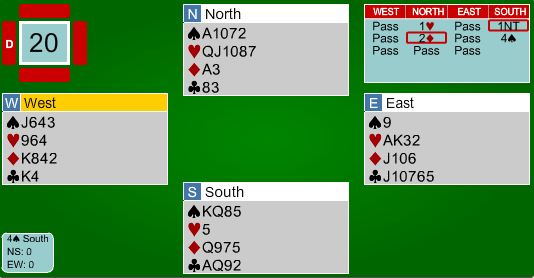 På tross av sur sits i spar, var det mulig å vinne kontrakten. Ulf fikk bra dreis på spilleføringa etter ruter ut til dama. Han fortsatte med en hjerter til dama og kongen. Øst fortsatte med kløver, som gikk via Ulfs dame til vests konge. Ny kløver gikk via tieren til esset. Deretter tok Ulf to høye trumf fra hånda. Da sitsen kom for en dag, spilte Ulf ruter til esset, og sendte hjerter knekt av gårde. Øst la liten, og Ulf slapp en minortaper fra hånda. Hjerter 10 fikk også beholde stikket, før nok en hjerter tok med seg esset fra øst. Ulf trumfet, og vest kunne gjøre hva han ville. Med bordets hjerter godspilt, var det ikke mer enn et trumfstikk for forsvaret.