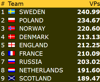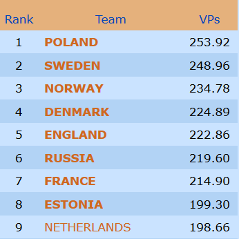 35-22-seier gjør at Norge får med seg 13,52 VP fra dagens siste kamp. Herlig med ei god avslutning!