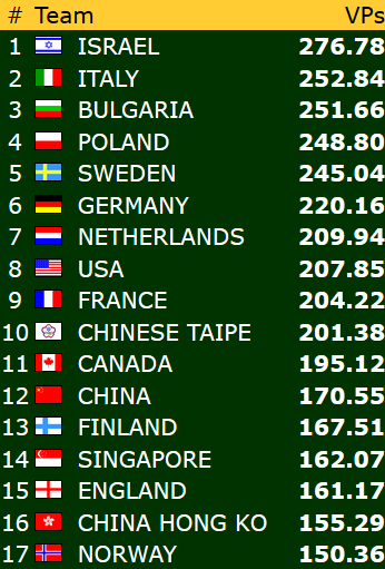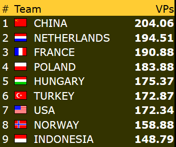 Norge endte til slutt på 17.plass med 168 VP.