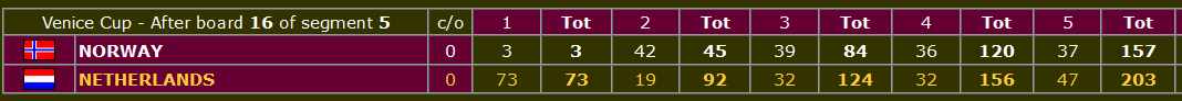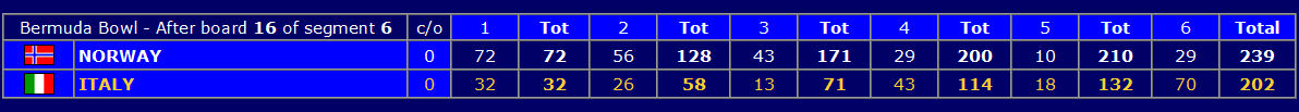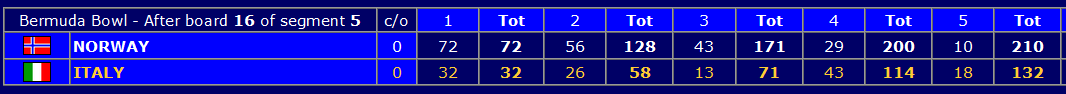 Norge er dermed 29 IMP bak med 24 spill igjen