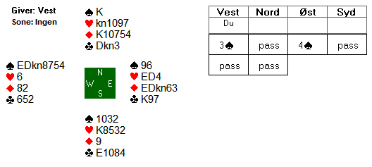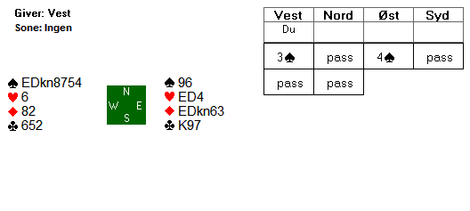 Om du nå frir deg med din siste spar får syd sjansen til å ta for sine sparstikk, mens du legger opp til skvistempo.