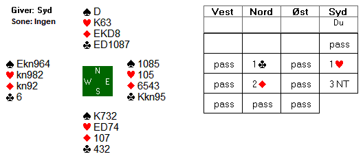 I spillet vi tar med fra Ungdoms-VM i dag skal du få prøve deg som spillefører i 3 grand på syds hånd:
