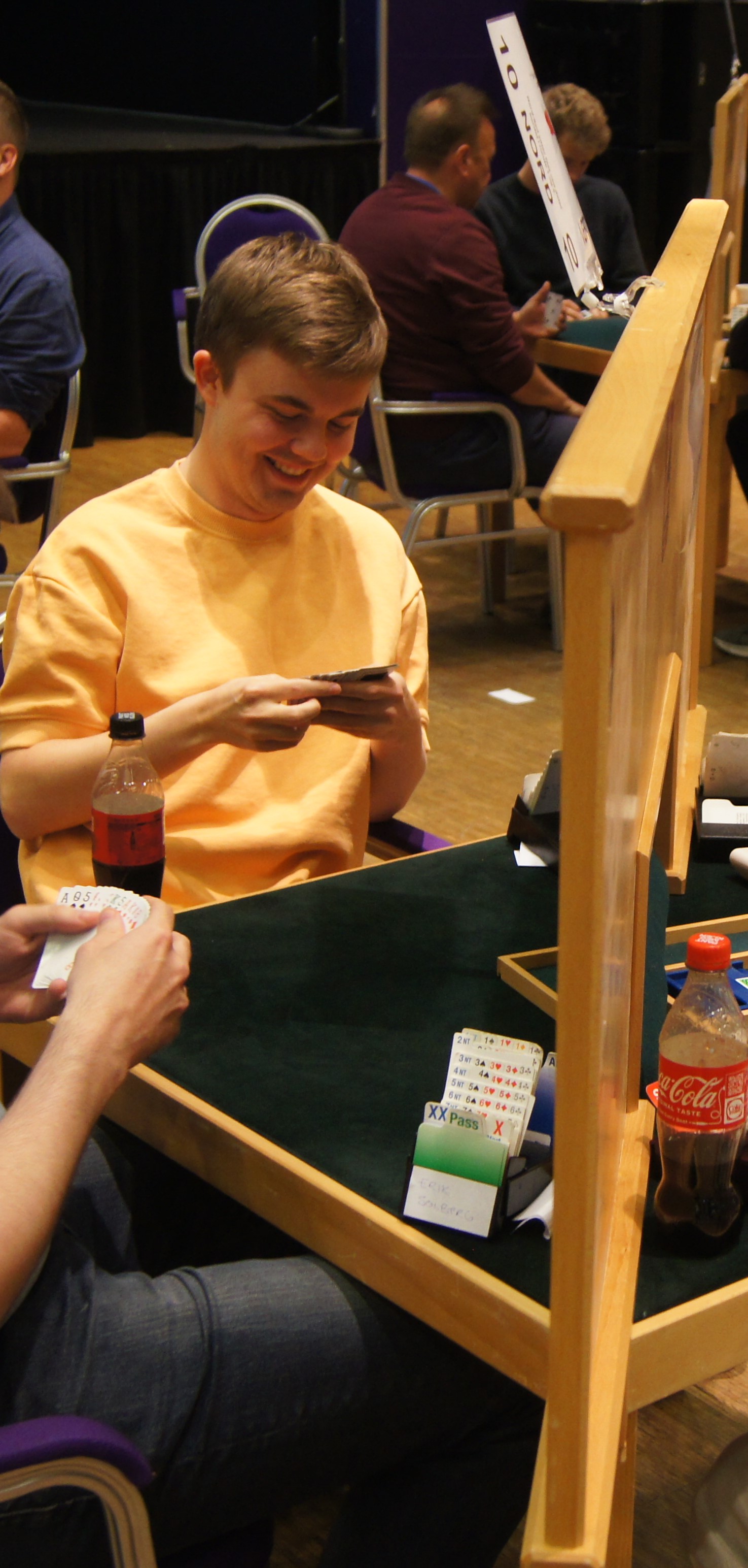 Markus begynte å spille bridge i 2014, men ble ikke aktiv før et par år senere. Han har spilt på det norske U21-laget siden 2017, men tar nå steget opp til U26. Han har to sølv og en bronse fra NM junior, og i våres kvalifiserte han seg til parfinalen sammen med sin far. Mange har sett Markus i sendinger fra NM og EM, men nå får dere sett han spille i stedet for. Han skal spille på U26 med Nicolai.