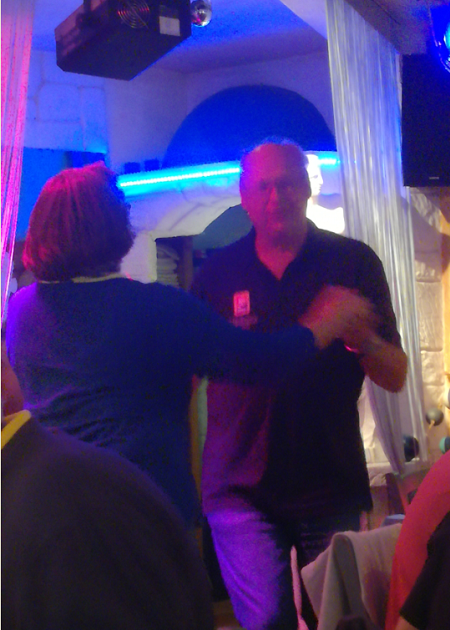 Veteranene var også på den greske restauranten og stemte i på bursdagssang for Torild! Med live musikk var det mulighet for litt dans, og en av veteranene benyttet muligheten til å vise at han kan mer enn å spille kort:
