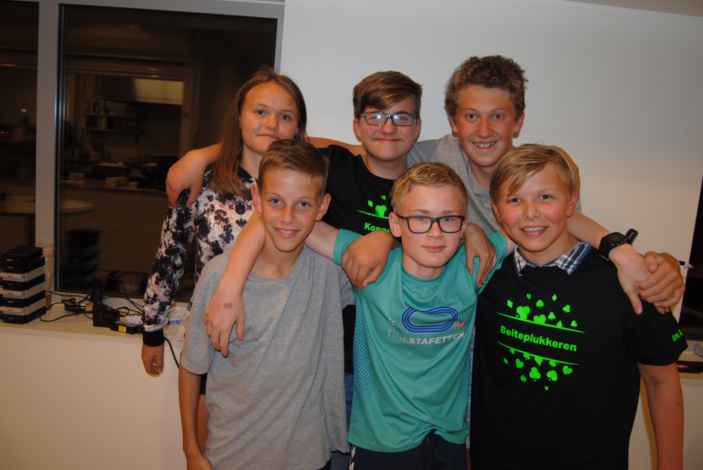 Norges U16-lag i årets VM: Bak fra venstre Kaja Brekke (14), Thomas Tøsse (14), Marius D. Austad (15). Foran fra venstre Anders