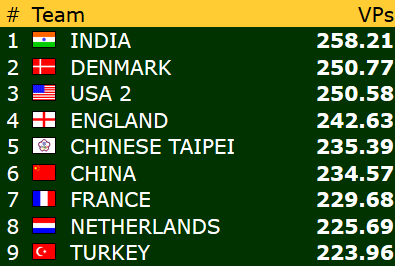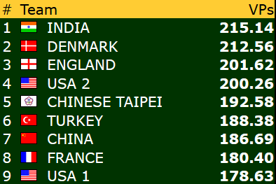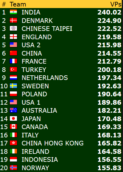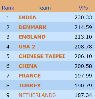 | 16 | India | 9-16 | 13 | 7,97 | -5,03 |