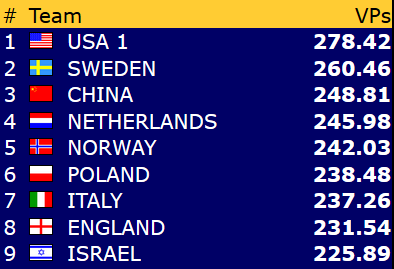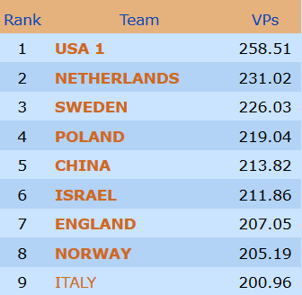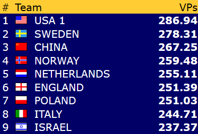 Norge - USA 2 12,80 - 7,20 (IMP-score: 25 - 15)