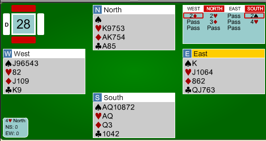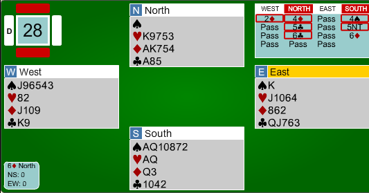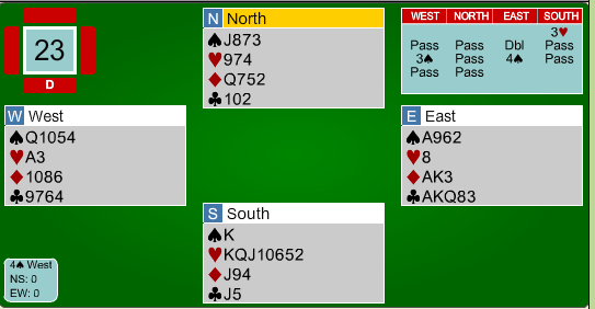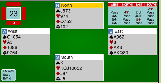 Spillefører fortsatte med en stor spar, og var så framme i følgende posisjon: