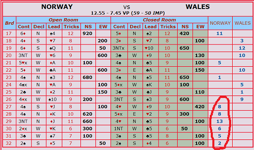 42-0 på de siste 6 spillene reddet kampen for Norge, som til slutt vant med 9 IMP.