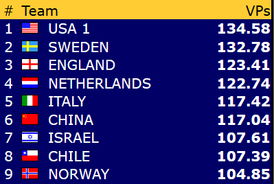 Norge - USA 2 10,61 - 9,39 (IMP-score: 50 - 48)