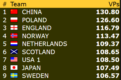 Likevel holder det ikke til topp 8 etter ni av 23 runder. Foreløpig kreves det et snitt på 11,94 VP for å ligge innenfor kvalikgrensa. Norges foreløpige snitt er 11,65 VP per kamp.