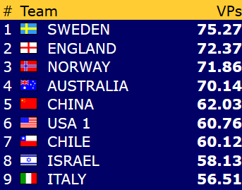 Norge - New Zealand 10,31 -9,69 (IMP-score: 32- 31)