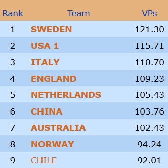 | 5 | Chile | 17-24 | 14 | 7,45 | -6,55 |