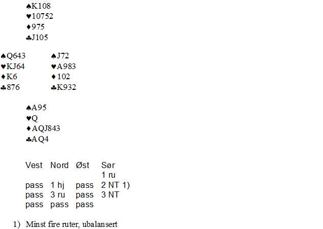 «Nå er du inne som vest i Åpent NM lag, som motspiller til den fargerike Øyvind Saur som ble spillefører i 4 hjerter.