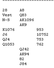 "Dette blir pluss, makker", sa han da han gikk 1700 i 2ru dobla i spillet under. "De spiller akkurat samme konvensjonen på andre bordet og med et enkelt motspill er det åtte beit, null stikk og 2000 å bokføre. 8 IMP til oss!"