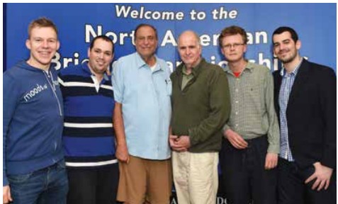Her er et spill fra forrige runde der Zimmermann - Moulton var heldige. 4hj står fordi det sitter VELDIG greit. Sparkongen i kapp, hjerteren 3-2 pluss at spillefører må finne ruteren. Det kom hjerter ut og spar knekt som seilte. Så ruter til knekten. Jeg er ikke sikker, men kan ikke øst beite nå ved å stikke og spille kløverdamen? Blir ikke bordet drept og spillefører henger med to kløvertapere? Mulig han kan lasje kløverdamen og så bruke tieren neste gang hvis øst spiller mer. Eller kan øst skifte?