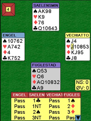 | 1sp* | 4hj | spar og benekter normalt trekort hjerter | |||||||||||