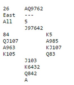 På mange bord åpnet vest med 2sp eller 3sp. I ettertid melder alle da 5hj, Blackwood uten hjerteresset, men det var faktisk godt under halvparten av parene som klarte å melde denne storeslemmen. Det er vel ikke akkurat imponerende?