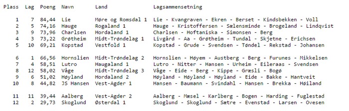 Ellers er det jevnt som bare det om de andre medaljene og før siste kort er lagt er det mange som har vært oppe og snust. Lutro overrasket positivt første helg, mens vegge Vest-Agder lagene skuffet noe. Denne ganger er det ikke barndåp for undertegnede, så han har planer om å avansere voldsomt med sitt lag.