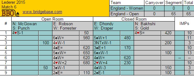 Det engelske landslaget med Andrew Robson, Tony Forrester, David Gold and David Bakhshi vant "Lederer" etter seier i alle kampene unntatt 23-25 mot Gillis. Nok et flott resultat med 2.plass til Janet De Botton sitt lag der Thor Erik Hoftaniska spilte med Dror Padon, en spiller jeg ikke kjenner til.