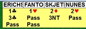 Erichsen - Skjetne kom i en håpløs 3NT etter dette meldingsforløpet.