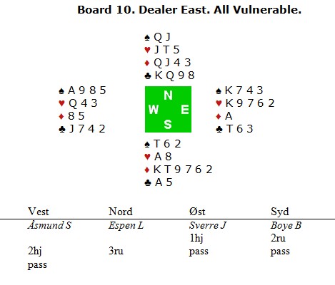 Jeg har forståelse for en forsiktig 3ru, men det var supermaks for å kun støtte makker som hadde meldt inn i sonen.