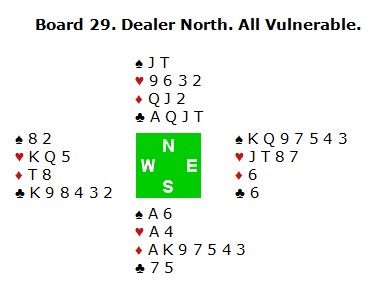 Nord åpnet med 1kl og øst gikk inn med en sperremelding i spar. Nå ga ikke syd seg før 7ruter. Vest spilte ut spar 8, norske utspill.
