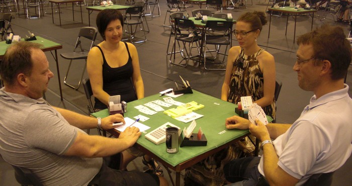 Det er vel mest vanlig at journalister og fotografer samler seg rundt Bord 1 i Monradturneringer. Derfor stakk jeg motsatt vei da jeg ankom Kongstenhallen i dag og viet noen minutter til fire hyggelige bridgespillere på laveste bord i nest siste runde NM Mixlag.