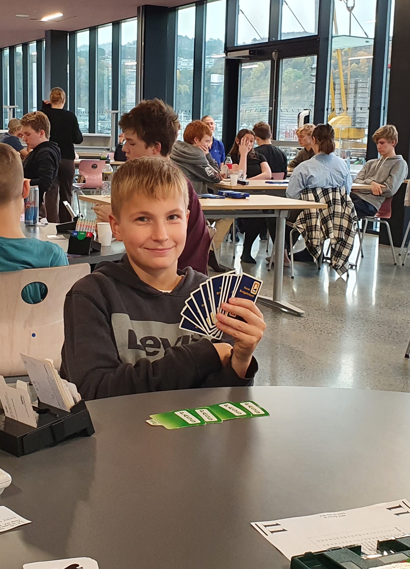 Alfred Johan Skråmestø Brandel Alfred begynte å spille bridge for omtrent 4 år siden. Han ble fort ivrig, og spilte for det norske U16 laget i EM sommeren 2024. Det var en god debut, da det norske laget tok bronse. Alfred kommer fra et område med mye juniorer, og har hjulpet til på lokale kurs. |