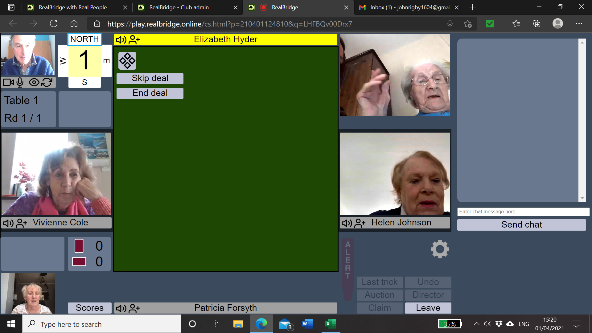 Bessie har aldri prøvd en iPad før, spilte på RealBridge for første gang. Korona har forhindret henne fra å spille bridge det siste året, så dette var første gang på et år at hun spilte bridge. Bessie elsker RealBridge, og spilte igjen allerede neste morgen med venninnene sine.